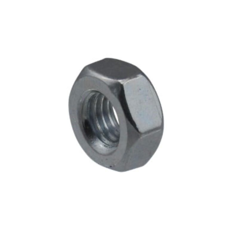 M6M Mutter FZB – sexkantmutter i blankförzinkat stål, hållfasthetsklass 8, enligt DIN 934/ISO 4032. Ger korrosionsskydd och används för att fästa M6-skruvar i bygg- och industriprojekt.